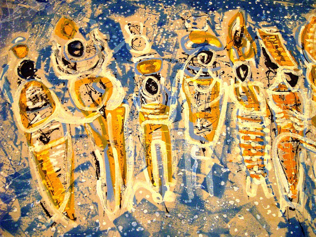 Die Menschen suchen das Meer. Sie betrachten es, tauchen hinein und fahren zur See. In meiner Malerei auf Leinwand, Holz und gebrauchten Segeln verschmelzen die Menschen mit der Sonne und dem Meer, in der Sehnsucht nach Freiheit.