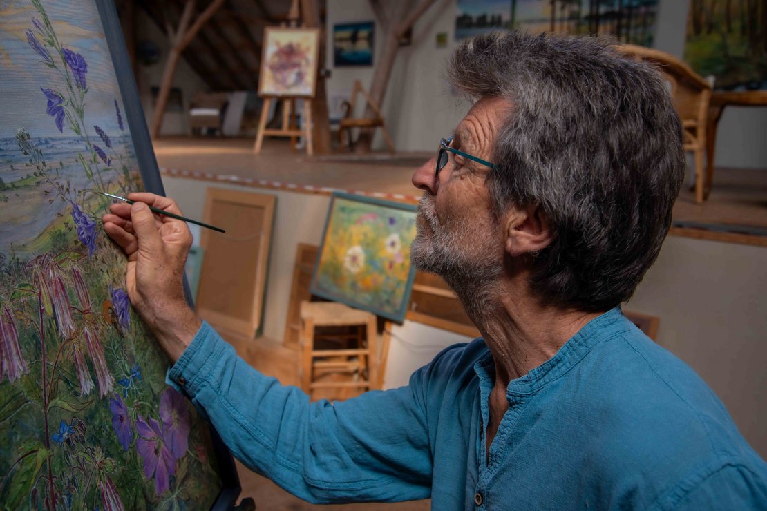 Die Palette an Motiven ist vielfältig im kleinen reetdachgedeckten Atelier am Selenter See. K.D. Schweitz ist bekannt für Porträts, doch auch Stillleben, Landschaften und Realismus gehören zu seinem Repertoire.